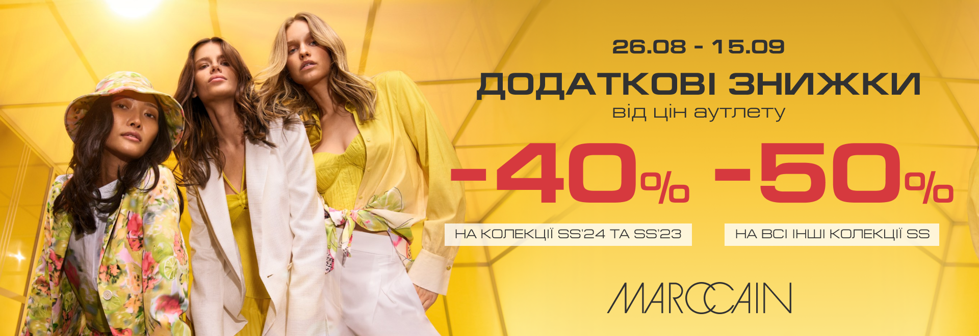 Додаткові знижки на всі колекції сезону весна-літо: -40% на SS24, SS23; -50% на всі інші
