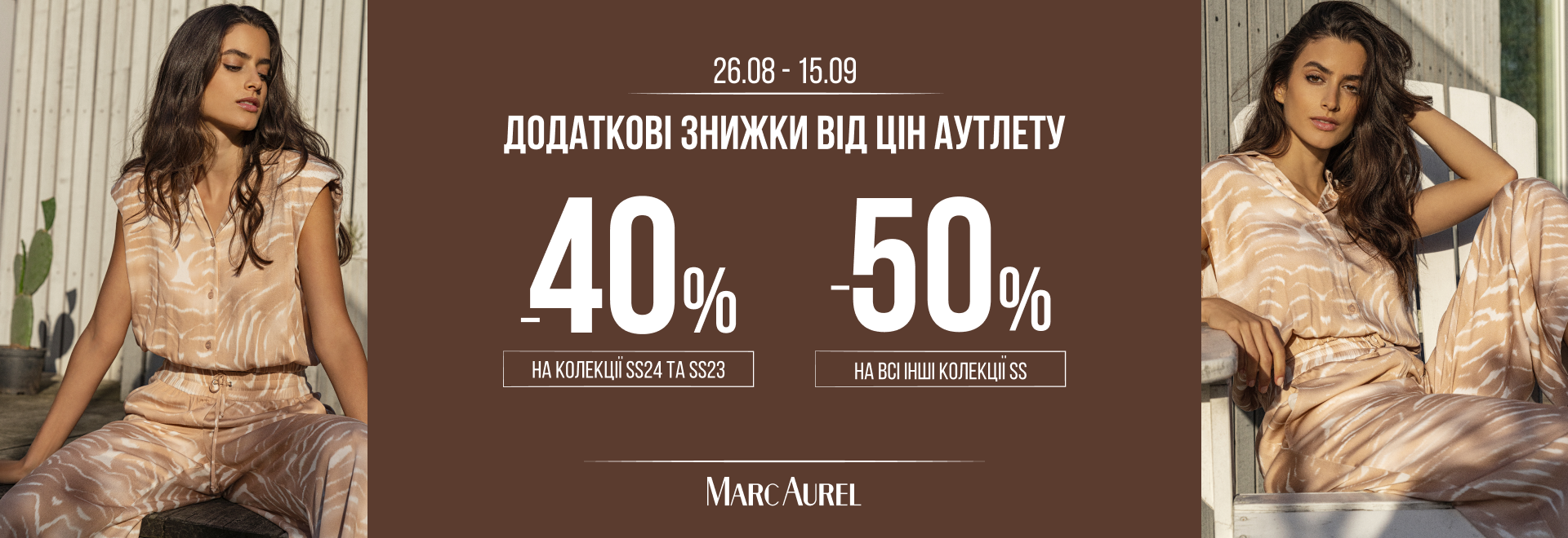 Додаткові знижки на всі колекції сезону весна-літо: -40% на SS24, SS23; -50% на всі інші