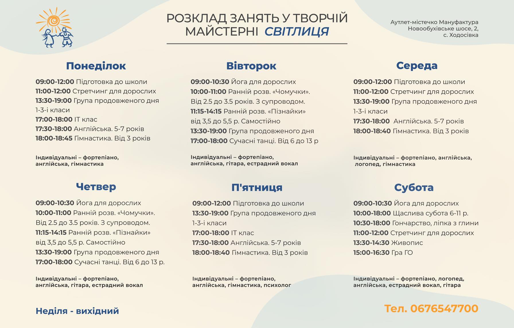 - Клуб для детей от 3 до 6 лет (полный день)